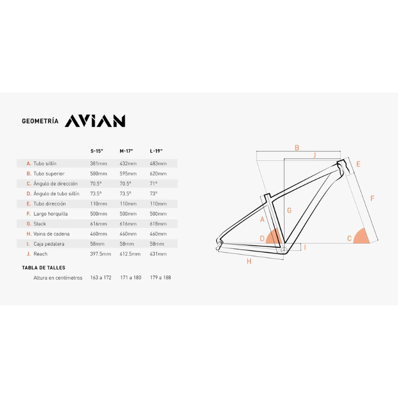 Completan el montaje una serie de componentes Volta de calidad: asiento cómodo, puños de espuma, manillar recto de 720 mm y un portasilla de doble ajuste. Con un peso total de 13,5 kg, la AVIAN combina ligereza y resistencia en un diseño preparado para los desafíos del MTB moderno.